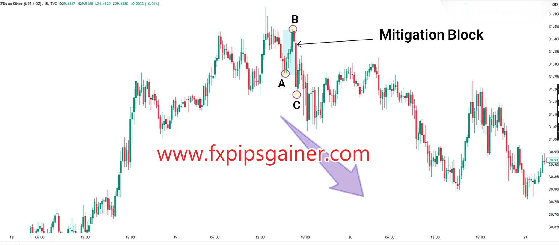 Mitigation Block Example (XAG/USD – 15-Min Chart)